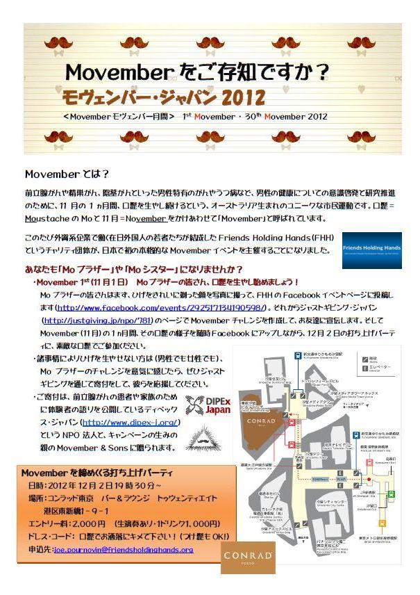 このたび外資系企業で働く在日外国人の若者たちが結成したFriends Holding Hands(FHH)というチャリティ団体が、日本で初の本格的なMovemberイベントを主催することになりました。