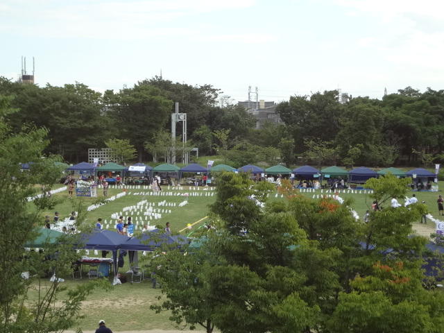 写真はついでに立ち寄った水族館から見た会場の風景。