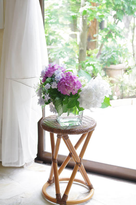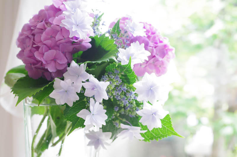 お庭の花(アジサイとあとは何かな)でしょうか?