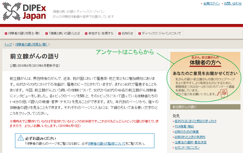 ・アンケートのページへダイレクトに: http://www.dipex-j.org/web2011.html